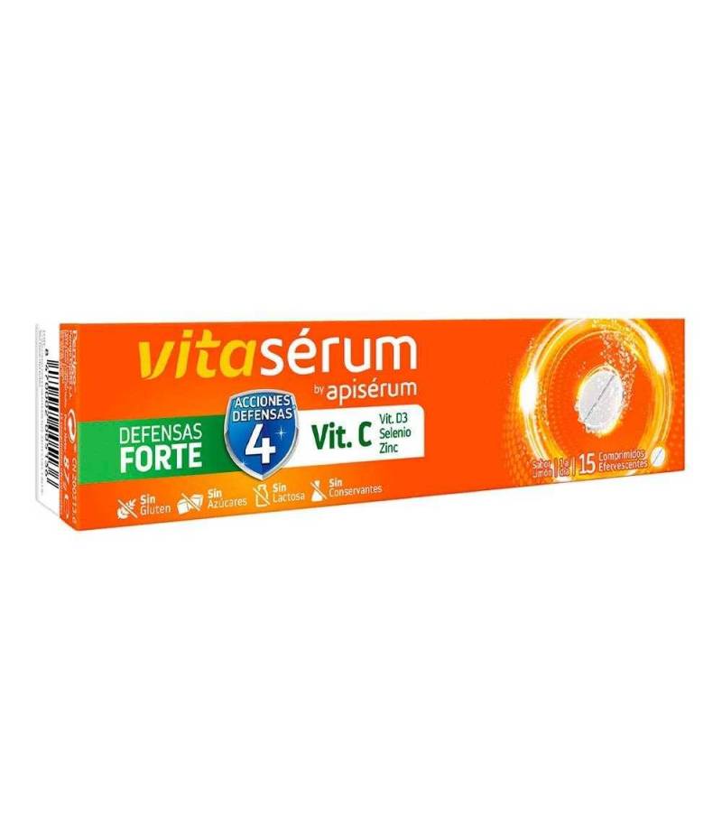 Vitasérum Defensa Forte combina una alta concentración de vitamina C con vitamina D3, selenio y zinc en 1 comprimido efervencente.