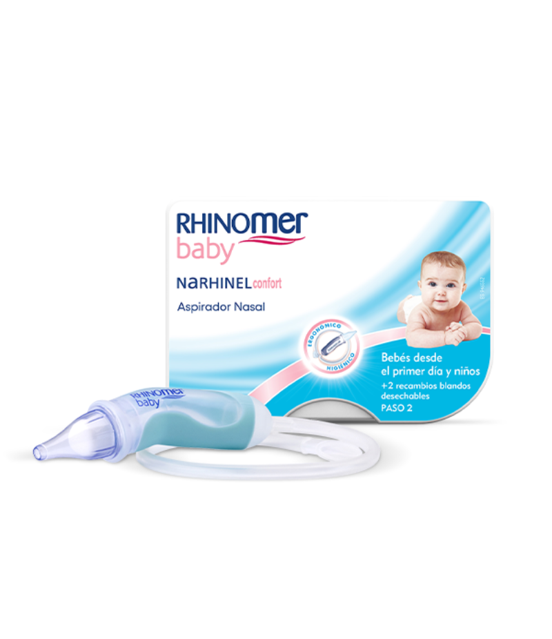 Narhinel Confort-Rhinomer Baby Aspirador Nasal tiene una forma ergonómica y sus recambios con filtros absorbentes son de un material suave y flexible para que sea muy seguro, higiénico y fácil de usar en la delicada nariz de tu bebé.