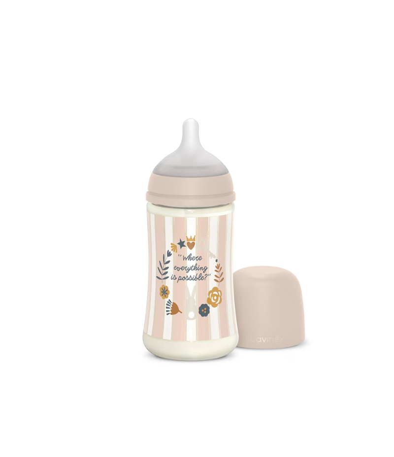 Su gran diámetro facilita a los padres la preparación y la limpieza de la toma, además de potenciar su estabilidad, mientras que su forma ergonómica permite una mayor sujeción más cómoda y segura.