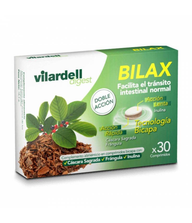 Vilardell Digest Bilax es un laxante con prebióticos para mejorar el estreñimiento en comprimidos bicapa de doble acción. Contiene una capa laxante que favorece un buen tránsito intestinal y otra de fibra con efecto prebiótico para ayudar al equilibrio de la microbiota intestinal a largo plazo.