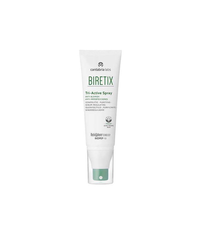 Biretix Tri Active Spray Anti-imperfecciones es un spray exfoliante e hidratante indicado para pieles con tendencia acneica. Gracias a su aplicación 360 facilita la aplicación en zonas extensas del cuerpo como pecho y espalda.