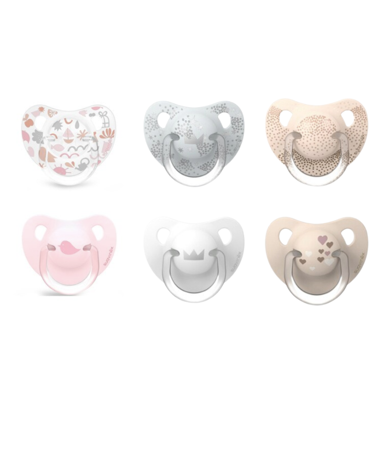 Chupetes para bebés de 0 a 18 meses con tetinas anatómicas de silicona.