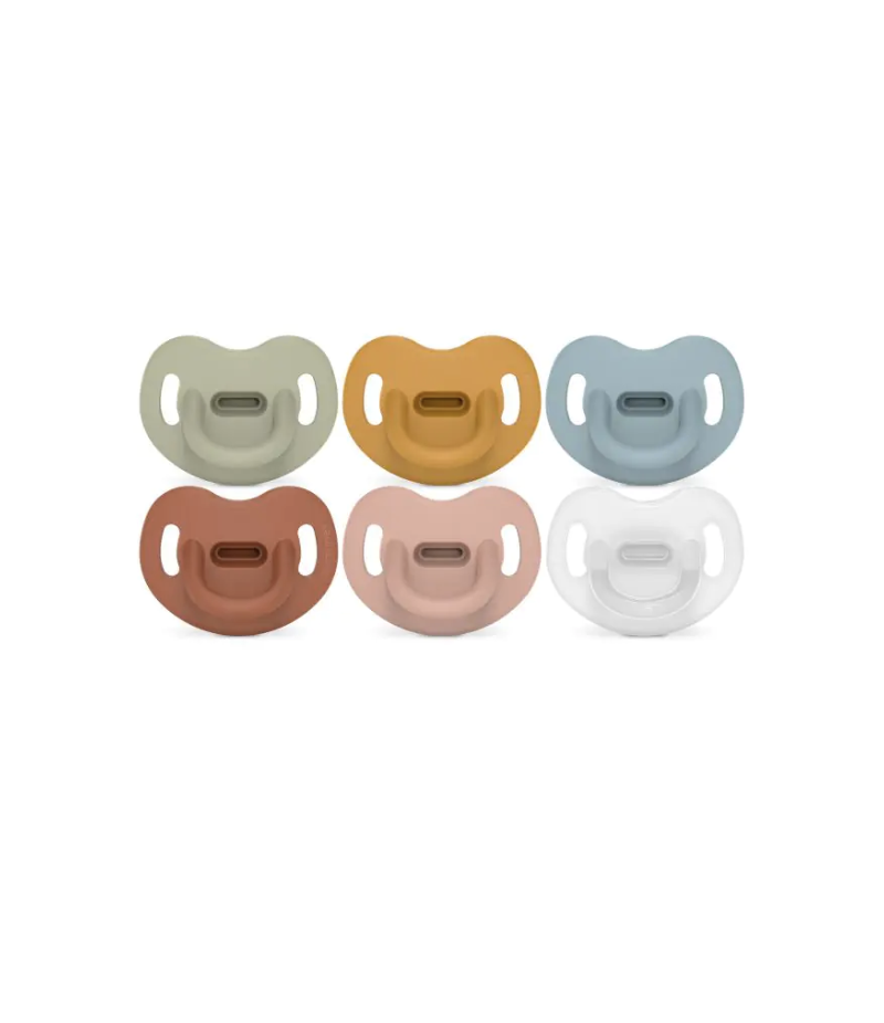 Pensada para no invadir la cavidad oral y proporcionar al bebé la misma sensación que experimenta en su estado natural/fisiológico cuando no lleva chupete. Diseñado para respetar el desarrollo bucodental del bebé.