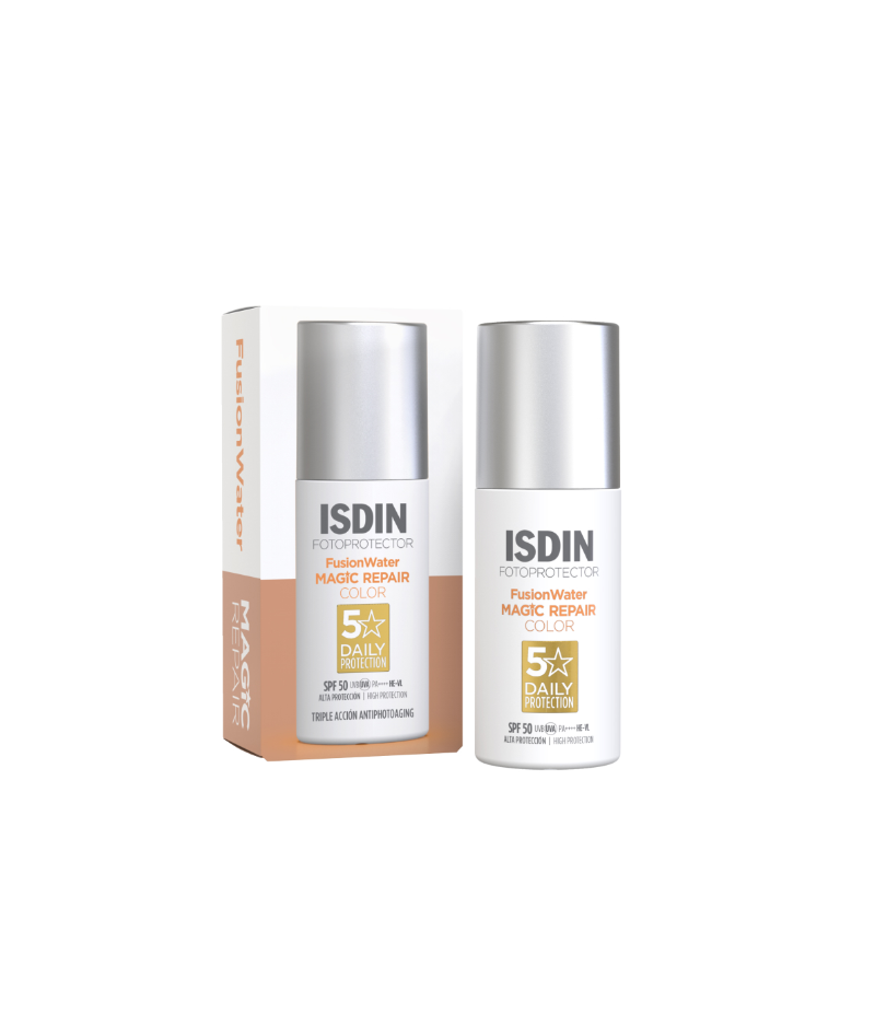 La fórmula de Fusion Water Magic Repair Color SPF 50 contiene una combinación única de activos antiedad y antioxidantes que combaten los signos del envejecimiento prematuro de la piel y ayudan a reparar el daño celular ocasionado por el sol.