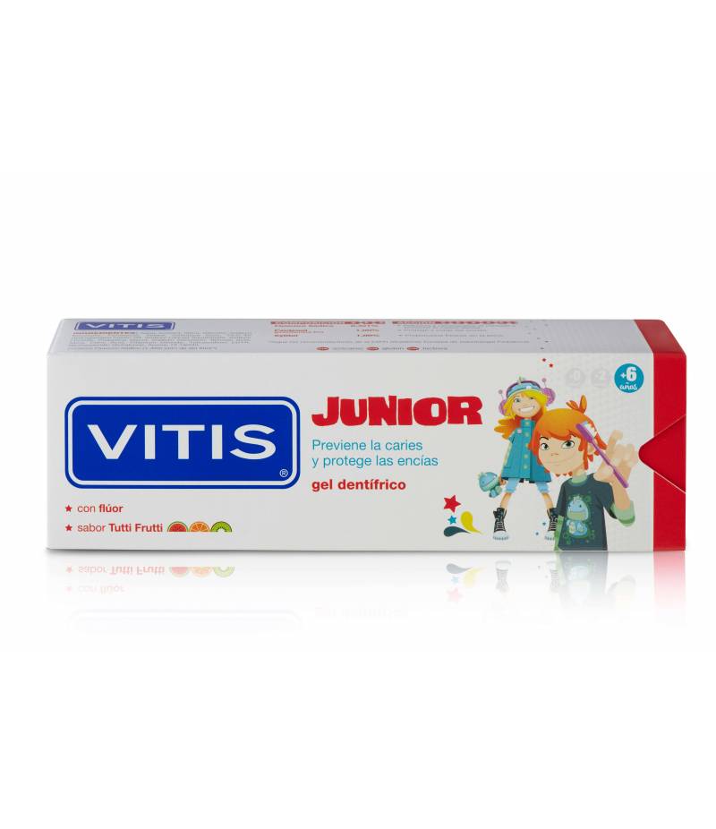 El gel dentífrico VITIS® junior, ha sido especialmente formulado para la higiene bucodental de niños de más de 6 años, cuando se inicia la erupción de la dentición definitiva.