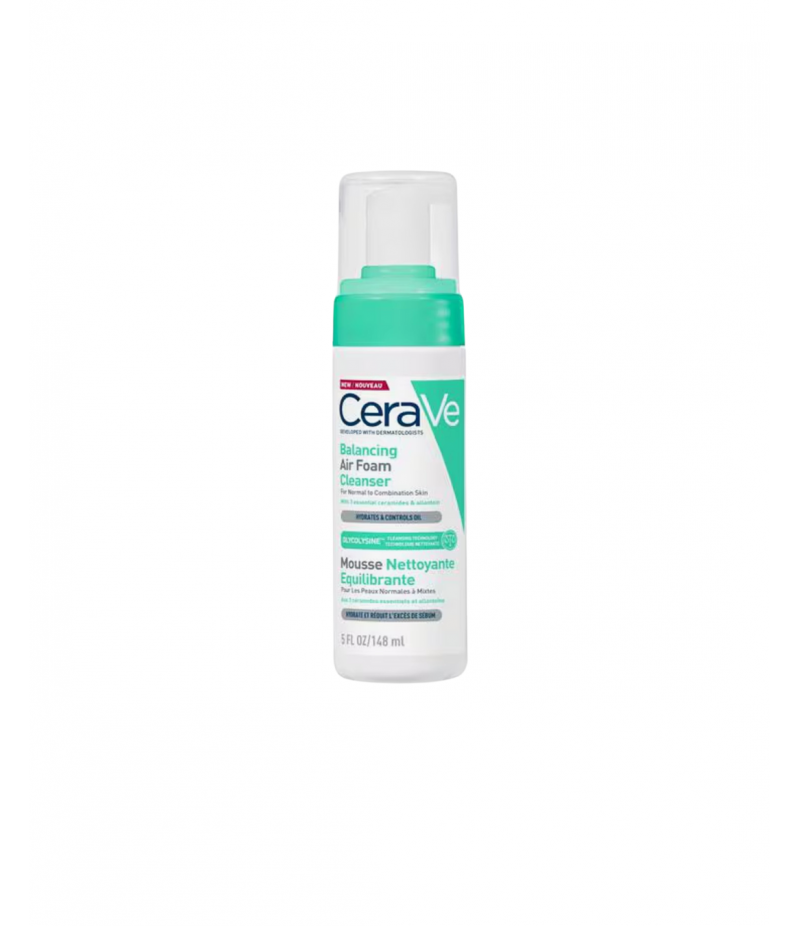 Limpiador balancing contiene tecnología Glycolysine, 3 ceramidas idénticas a la piel y alantoína, que juntas limpian e hidratan la piel y reducen el sebo.