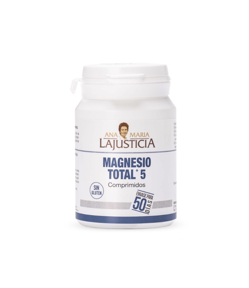 Conjunto de 5 fuentes de Magnesio. Disminuye el cansancio y la fatiga y mejora el funcionamiento del sistema nervioso y musculo-esquelético. Con efecto laxante bajo.