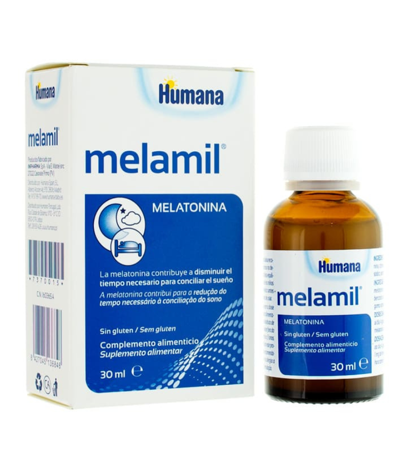 Complemento alimenticio de melatonina. La melatonina contribuye a disminuir el tiempo necesario para conciliar el sueño.