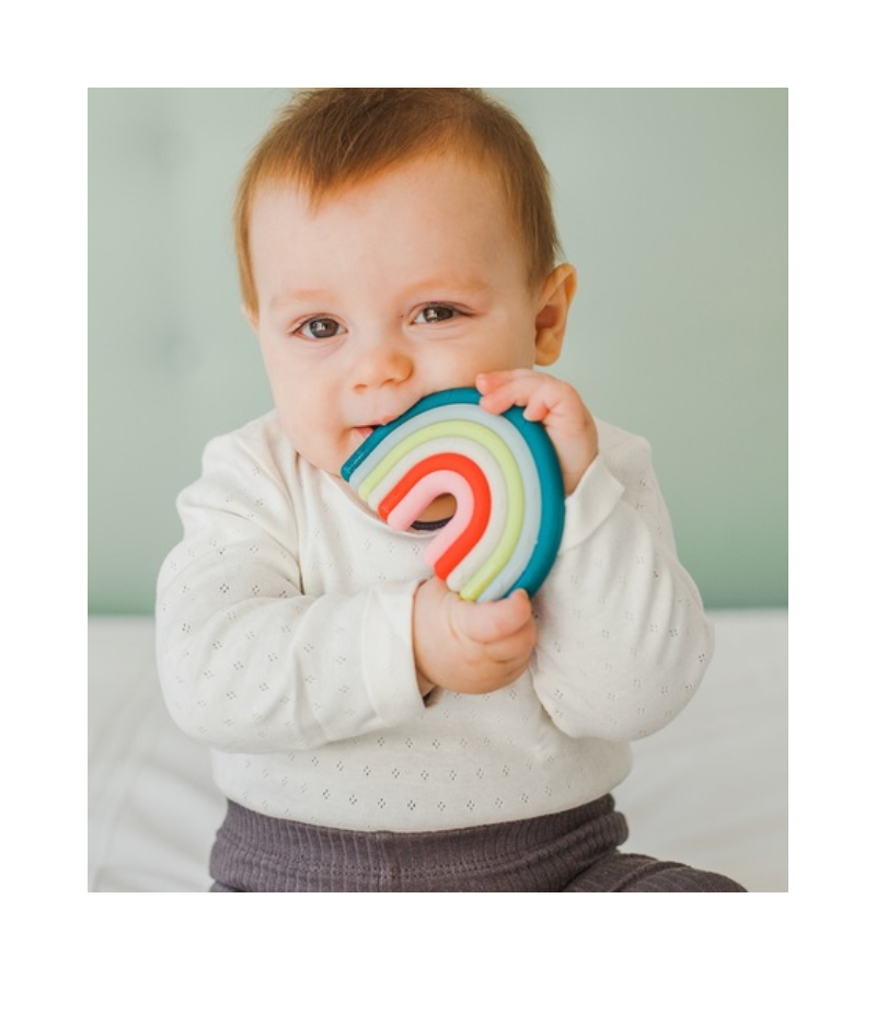 Los distintos relieves masajean las encías y los múltiples colores estimulan sus sentidos. Este mordedor, flexible y agradable al tacto, favorece el desarrollo de la motricidad fina: el bebé empieza a establecer fuerza y control de los dedos de sus manitas.
