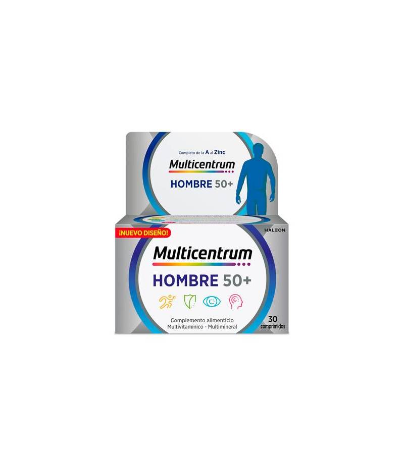 Complemento alimenticio con vitaminas y minerales para hombres a partir de 50 años. Fórmula específicamente equilibrada con cantidades reforzadas de vitaminas y minerales que ayudan a satisfacer las necesidades nutricionales de los hombres a partir de 50 años.