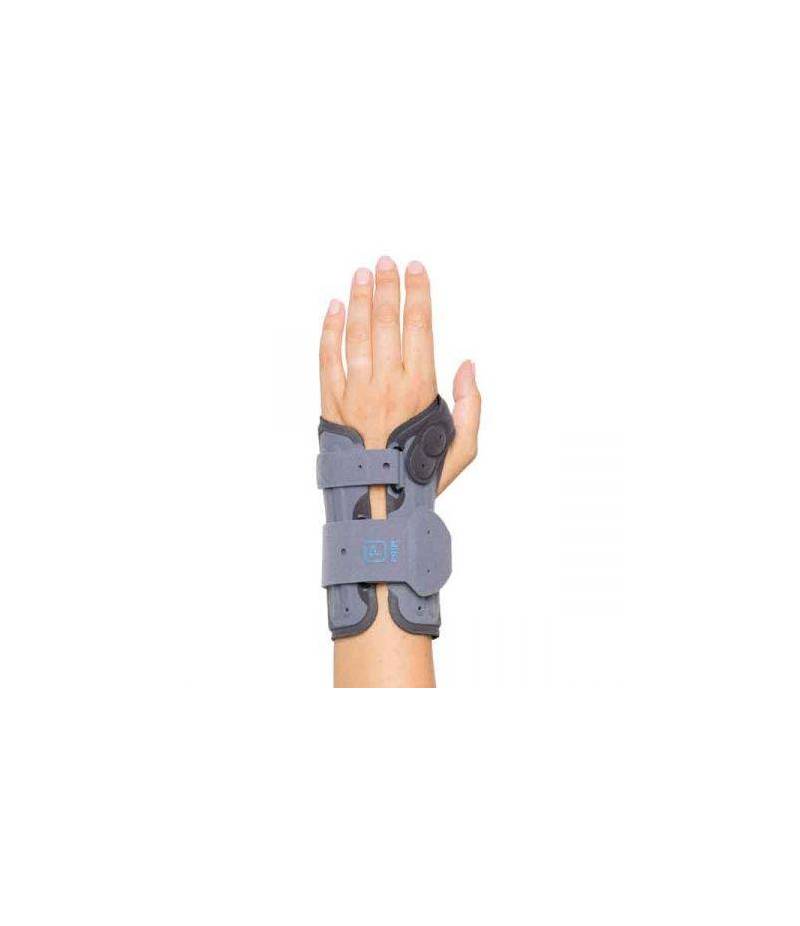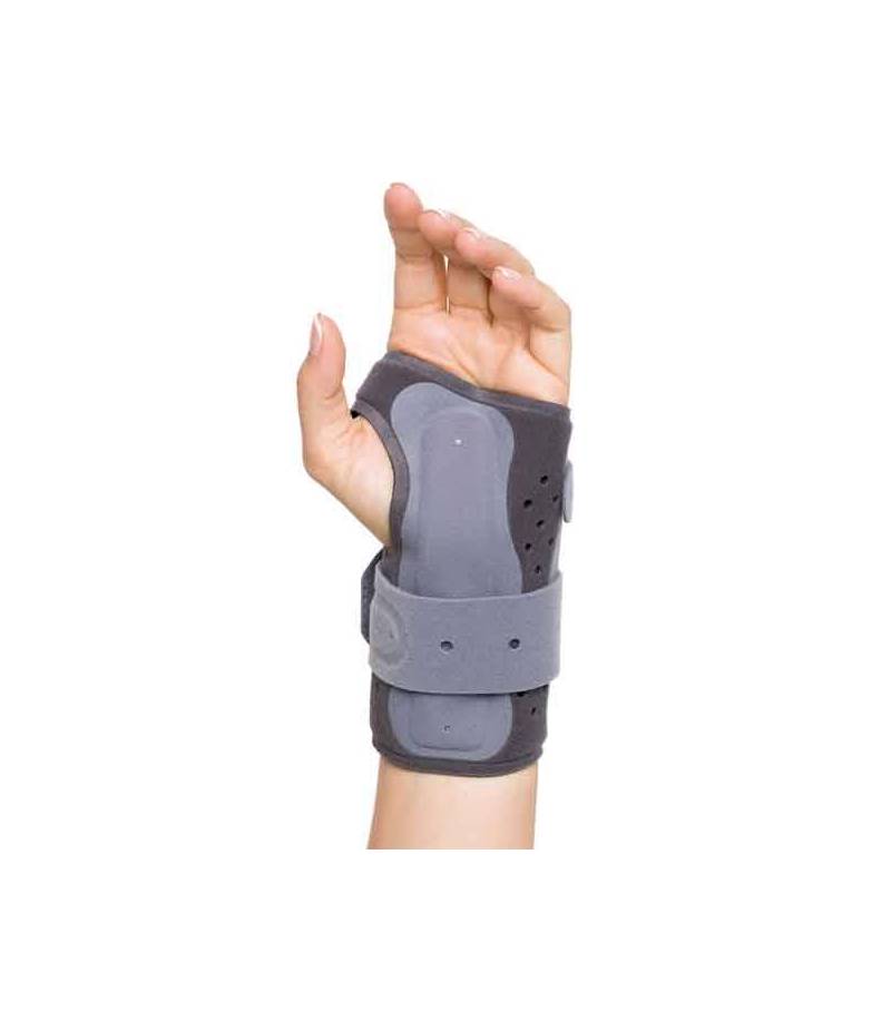 Muñequera derecha que limita la flexión dorso-palmar ayudando a la desinflamación del nervio mediano, gracias a su férula maleable.