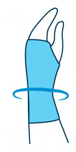 Muñequera izquierda estabilizadora con férula de pulgar y férula palmar con pletinas de aluminio y moldeable en pulgar y en zona palmar.