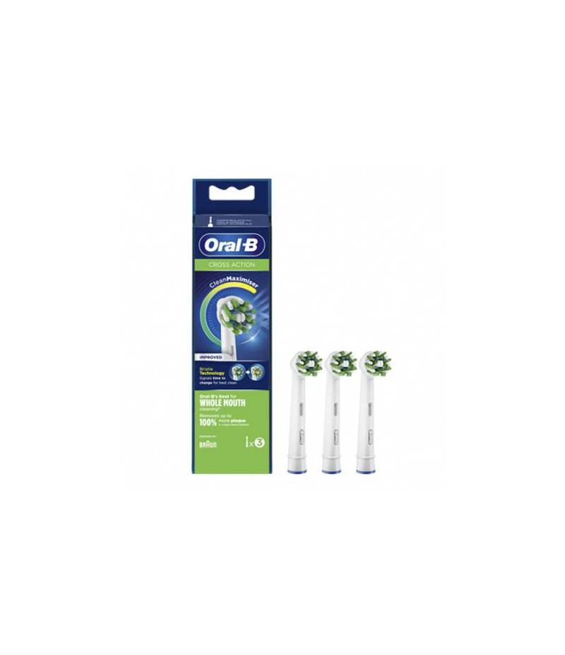 El cabezal de recambio Oral-B CrossAction tiene unos filamentos inclinados para limpiar profundamente entre los dientes y eliminar la placa.