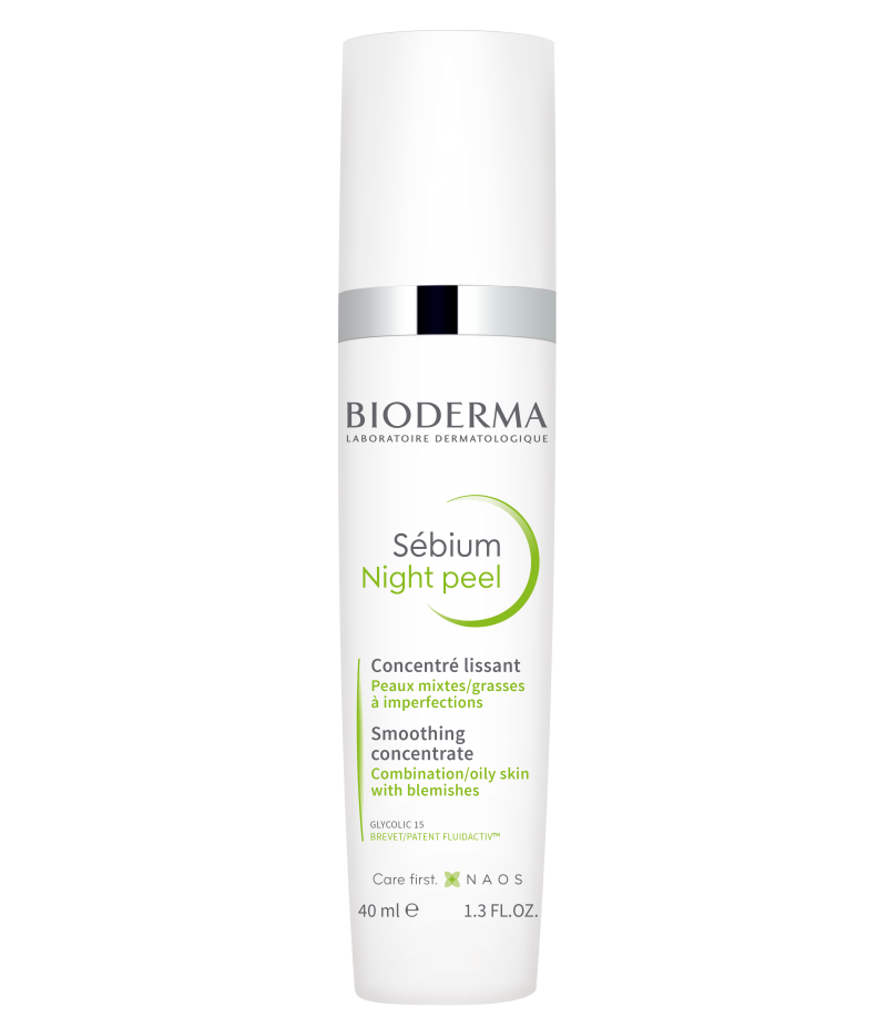 Sebium Night Peel favorece la disminución de las marcas y de las imperfecciones persistentes y reduce los brillos. El ácido glicólico, formulado al 15%, favorece la renovación epidérmica. Este cuidado de peeling suave alisa la textura de la piel y realza su luminosidad natural.