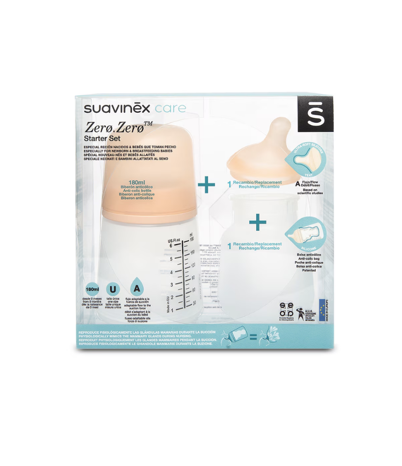 Biberón anticólico Zero-Zero especial para recién nacidos y bebés que toman pecho.