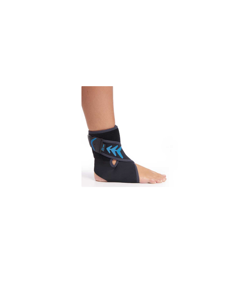 Contiene cierres de micro-gancho que permiten realizar el ajuste de la prenda y regular la compresión de forma individualizada y en cada fase del tratamiento y cinchas cruzadas que permiten ejecutar el control medio-lateral del tobillo de forma gradual.